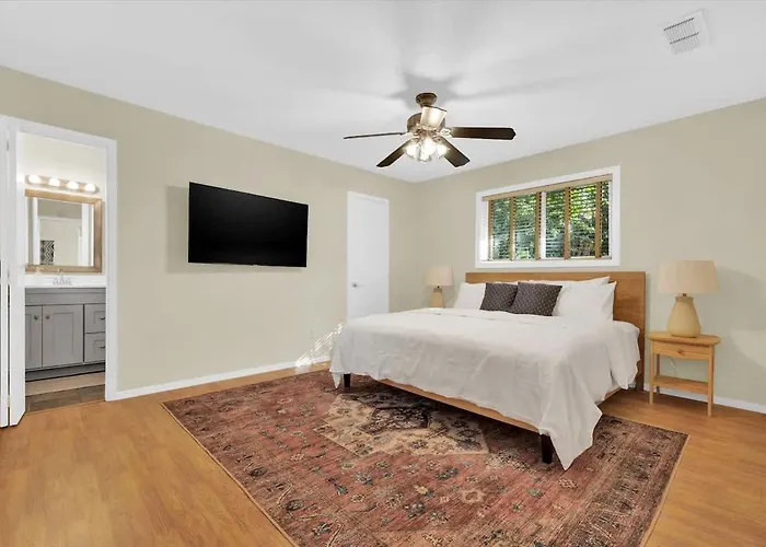 Nestled in the verdant expanse of South Austin, Zilker Home 3 Bedroom 2 Bath With Backyard offers a unique retreat that seamlessly blends comfort with nature. Surrounded by charming residential suburbs, the property is just a stone's throw away from the breathtaking Lady Bird Johnson Wildflower Center, where guests can immerse themselves in Texas's native botanical beauty. This delightful three-bedroom residence serves as the perfect home base for both relaxation and exploration. The thoughtfully designed bedrooms within Zilker Home provide an ideal sanctuary, where modern furnishings meet cozy ambiance. Each room exudes warmth and comfort, featuring ample space and amenities, ensuring guests enjoy a restful stay. The two full bathrooms enhance convenience, particularly for families or groups traveling together.